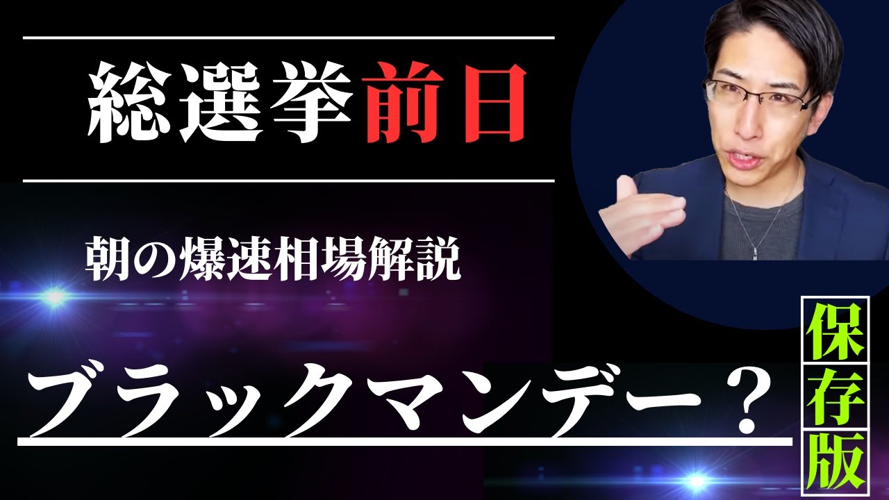 総選挙前日!朝の爆速相場解説。ブラックマンデーを証券会社が警告?