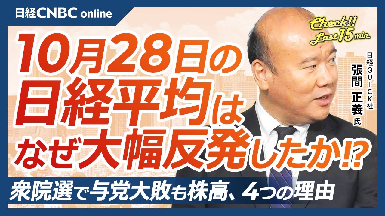 #株価 #NIKKEI225 #今日 #株式市場 #大引け #TOPIX #株価 #終値 #日本株 #速報 #投資 #株式投資 #資産運用 #最新 #マーケット #ニュース #NQN #日経CNBC #米国株 #なぜ #NIkkei225 #JPY #Japan #Japanase #yen #Index #Stock #Market #Latest #NikkeiStockAverage #closingsession #反発 #衆院選 #与党 #自公過半数割れ #大敗 #円安 #原油 #株高 #企業決算 #ファナック #中外製薬 #中国株 #資金流入 #米大統領選挙 #FOMC #米金利 #長期金利 #ストラテジスト #トレーダー #政治 #不透明感 #海外勢 #買戻し #円高 #日銀 #金融政策 #財政 #イスラエル #イラン #原油高 #米国株先物 #裏金問題 #信越化学工業 #東京製鉄 #日立建機 #ゴールドマンサックス #GS #SBG #経常利益 #ヘッジファンド #米10年債利回り #エバコアISI #機関投資家向け大統領選 #トランプ氏 #ハリス氏 #ムーブ指数 #ハイテク株 #雇用統計