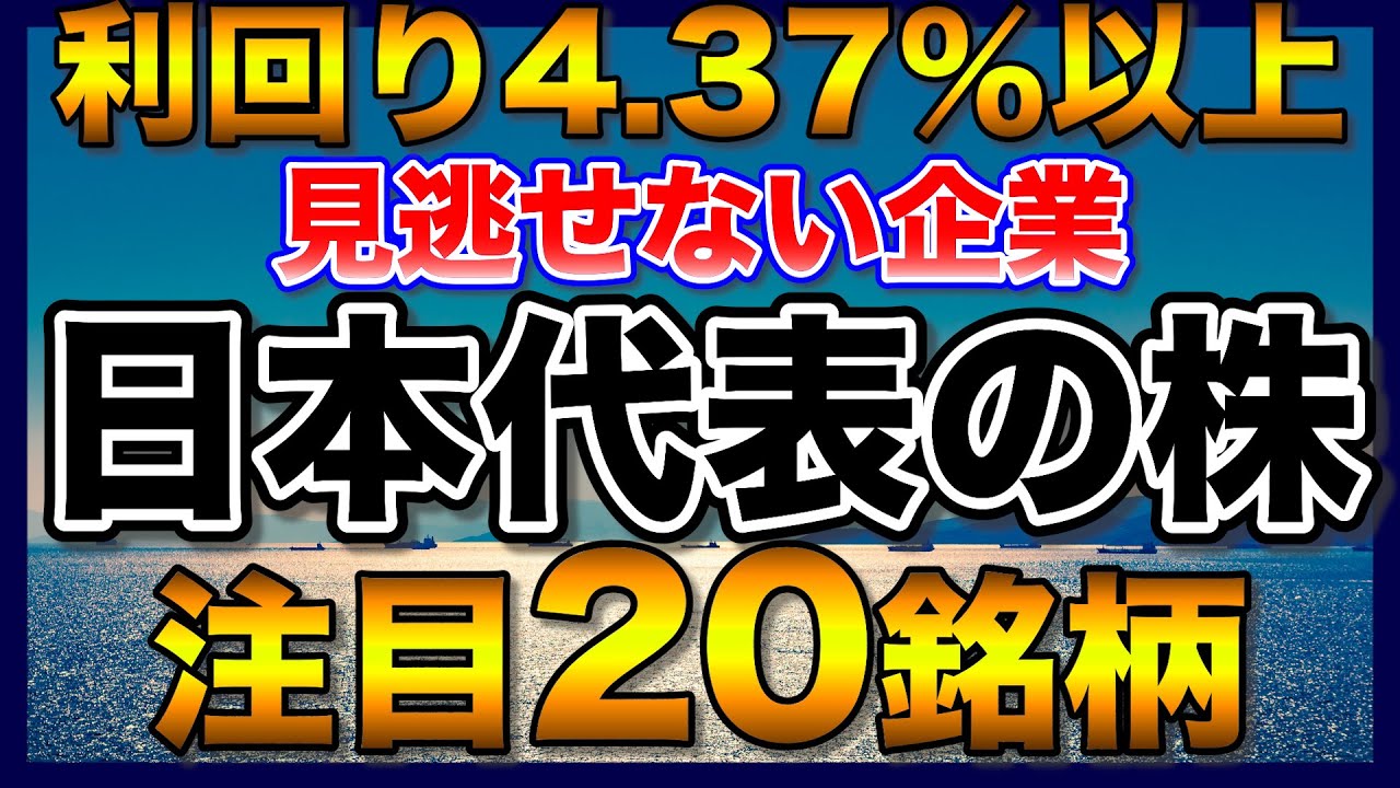 今回の動画では見逃せない!利回り4.37%以上!日本代表の株!注目20銘柄というテーマをご紹介させて頂きたいと思います!