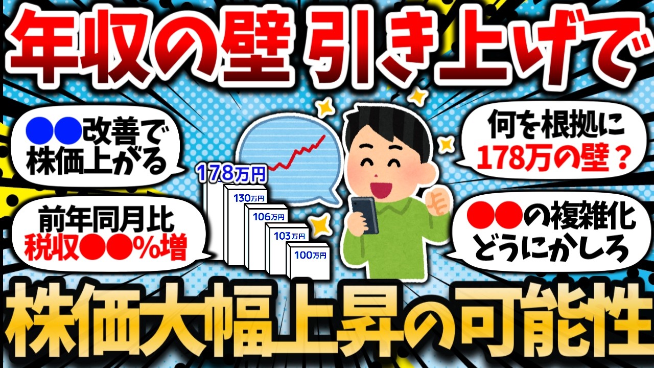 このスレでは、最近話題に挙がっている年収103万円の壁を178万円まで引き上げることを議題に、スレ民たちが様々な意見を交わし合っています。