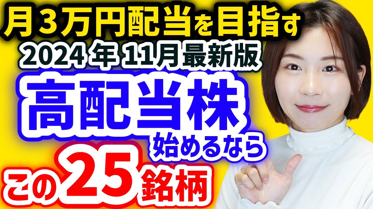 【月3万円の配当金を目指す】今から日本高配当株始めるならこの25銘柄【2024年11月利回りランキング】