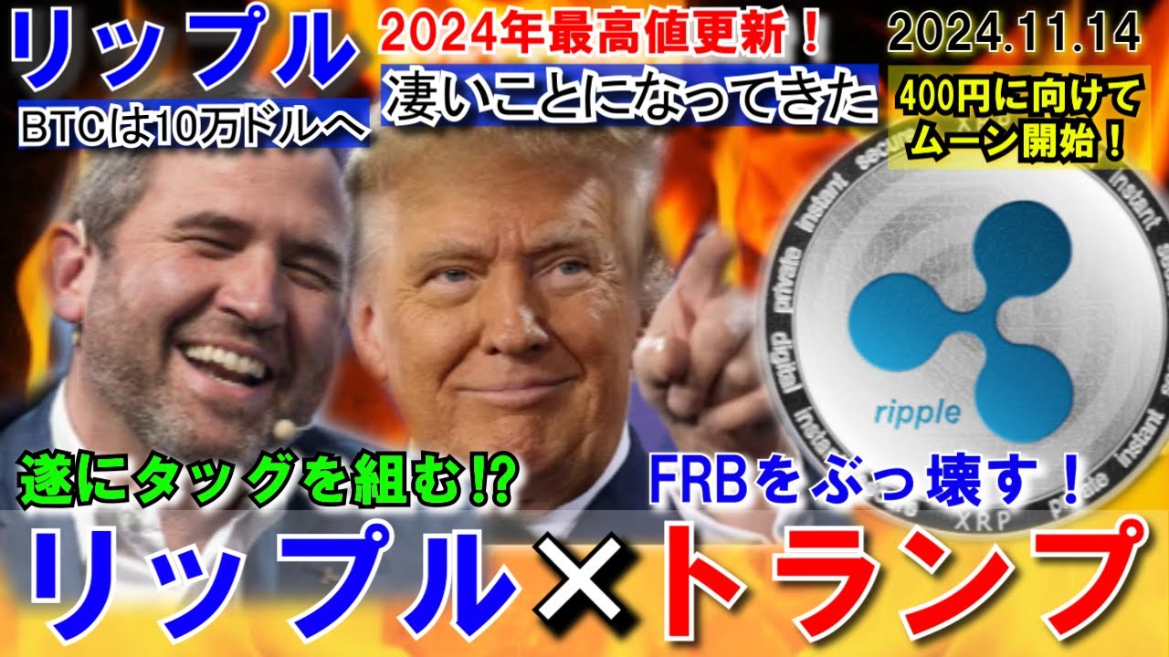 リップル(XRP)×トランプの最強タッグが遂に実現⁉BTC10万ドル突破は目前に!FRB、SECの寿命はもうない⁉過去最高値の更新まであと僅か!