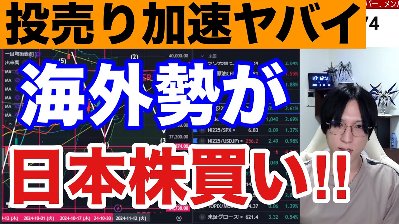 11/14【日本株投げ売りヤバい】円安なのに半導体株急落で日経平均続落。海外投資家がついに日本株大幅買い越し。ドル円155円。米国株、仮想通貨BTCは強い!