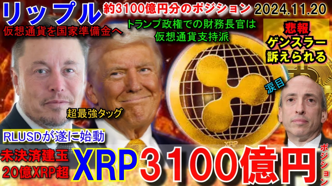 リップル(XRP)過去最高値へ!米国財務長官が仮想通貨支持派で大興奮!ゲンスラー遂に訴えられる!!!RLUSDが遂に始動!面白くなってきやがった!