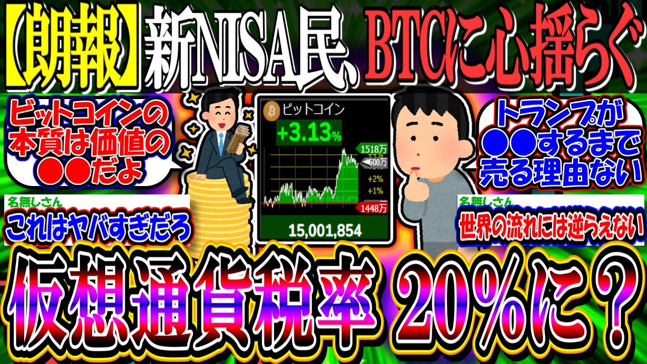 【朗報】新NISA民、BTCに心揺らぎ始める…『仮想通貨税率、20%になりそう』【2ch投資スレ/円安/国民民主党/玉木/米国株/S&P500/NASDAQ100/FANG+/マイクロストラテジー】