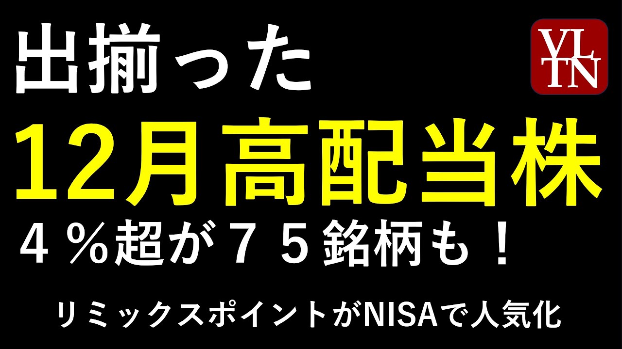12月の高配当株と注目の3銘柄。NISAランキング。~あす上がる株。最新の日本株情報。高配当株の株価やデイトレ情報についてもお話しいたします。