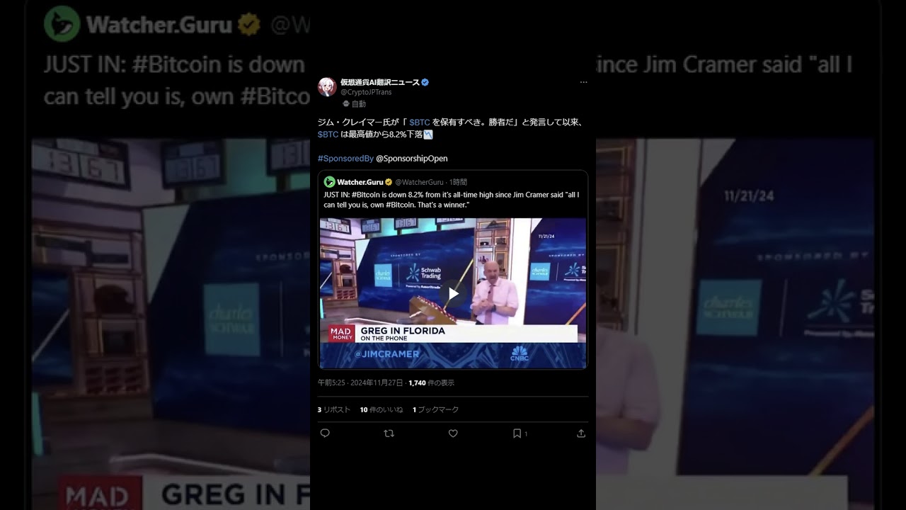 【2024年11月27日】仮想通貨ピックアップニュース Part1 モテ ファッション メンズ コーデ X 2024.11.282024.11.30 【Twitter】 https://x.com/CryptoJPTrans 【TikTok】 @cryptojptrans #仮想通貨 #クリプト #仮想通貨ニュース
