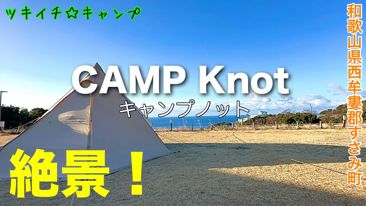 ツキイチ☆キャンプ104回目は、和歌山県西牟婁郡すさみ町にあるキャンプ場「CAMP knot」(キャンプノット)へ行ってきました。高台にあるキャンプ場で、サイトからは広大な太平洋が一望!風が強い時もありますが、行く価値ありです。キャンプ場も広く、トイレ、シャワー、サウナとなんでも揃っているキャンプ場でした。