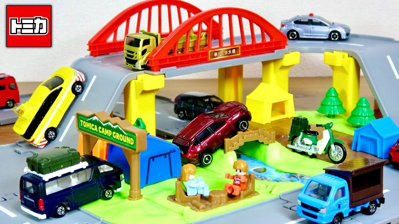 ベストトミカタウン賞でもあげたい!キャンプ場と鉄橋のレイアウトが簡単に組める☆キャンプ場で遊ぼう!トミカタウン 立体レイアウトセット トミカギフトも合わせて楽しめます☆