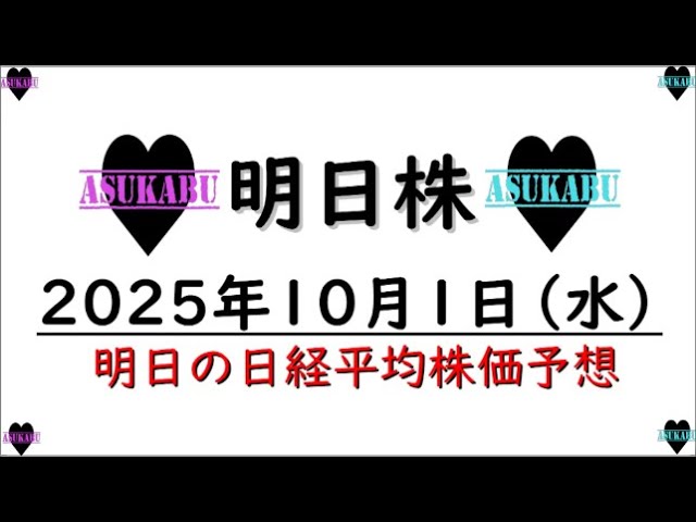 【明日株】明日の日経平均株価予想 2025年10月1日 明日株予想絶好調!明日は上昇ですね!