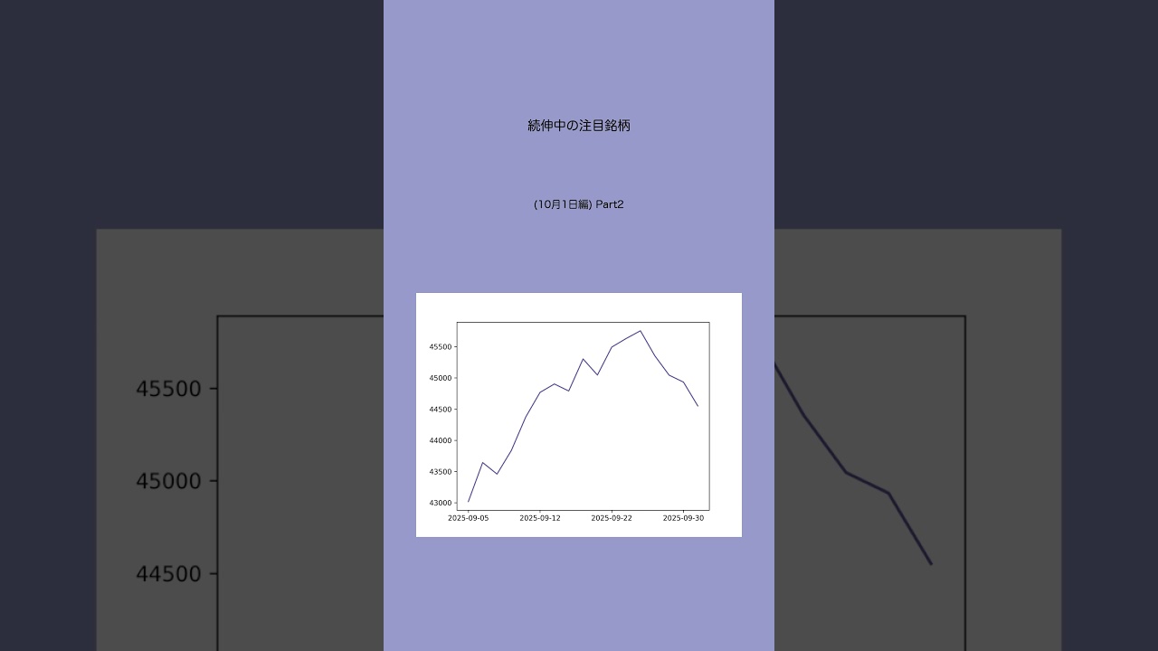 続伸中の注目銘柄(10月1日編) Part2 注目銘柄 X 2025.10.02 十分な調査を行っておりますが複数人での確認等は行っておらず誤りが含まれる可能性がございます。 気になる点があれば他の株サイト等も確認をお願いします。また、投資は自己責任でお願いします。 VOICEVOX:雨晴はう