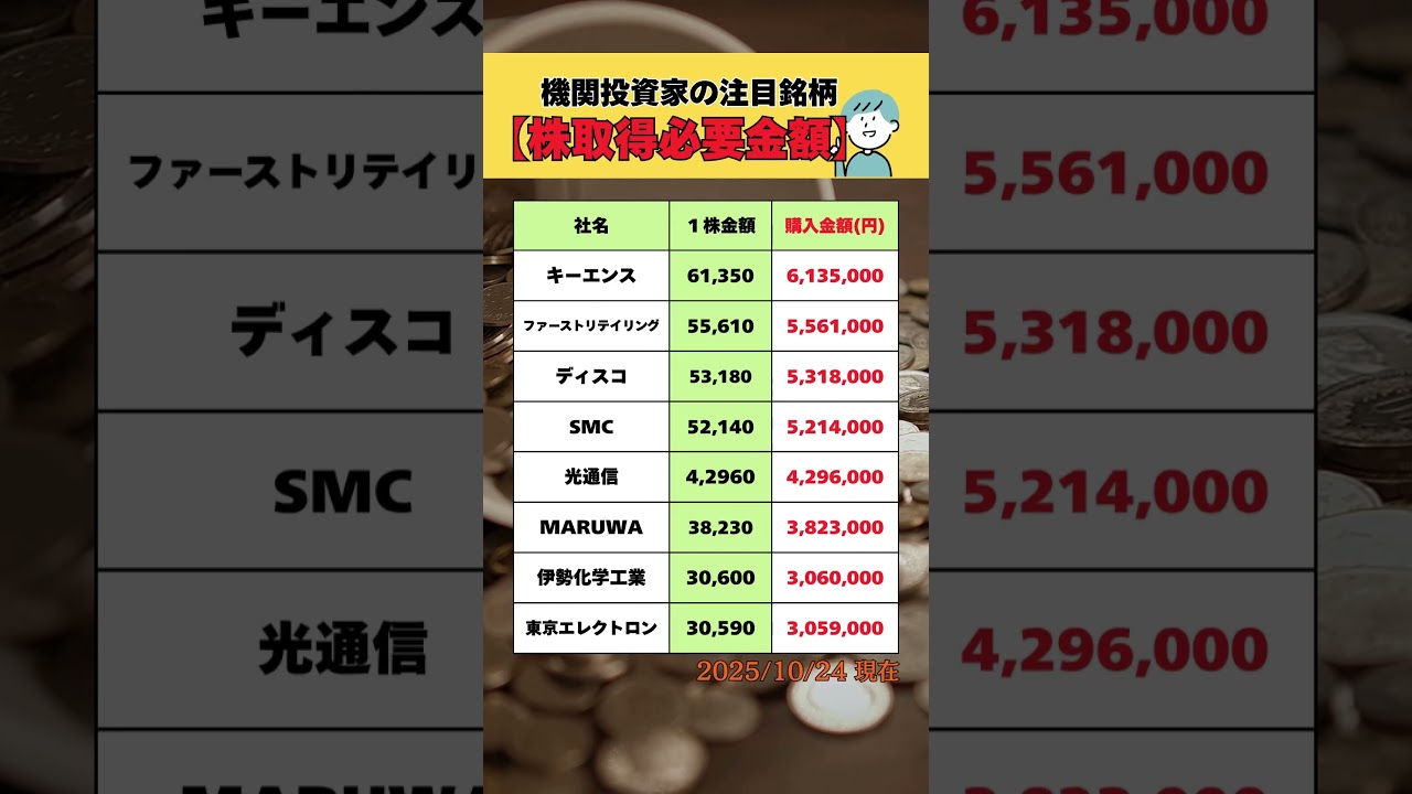 機関投資家の注目銘柄【株取得必要金額】 #shorts #お金 #投資