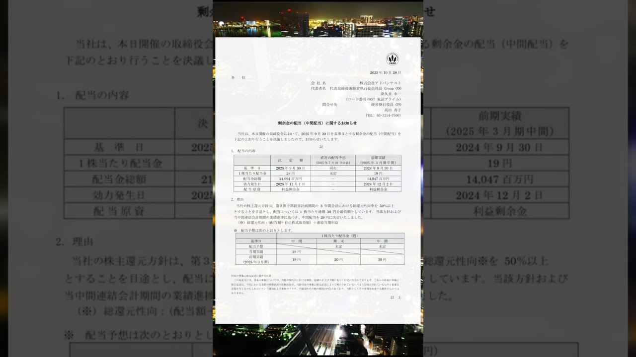 株投資✨✨✨アドバンテスト✨✨✨ 上方修正⤴️増配⤴️自社株買い💰 業績が急上昇しています😸 大幅な還元アップも‼️ 純利益の上方修正が20%以上! 増配に加え自社株買い1500億円! 株価は前場で20%上昇しています⤴️ 日経平均を大幅に押し上げていますね✨