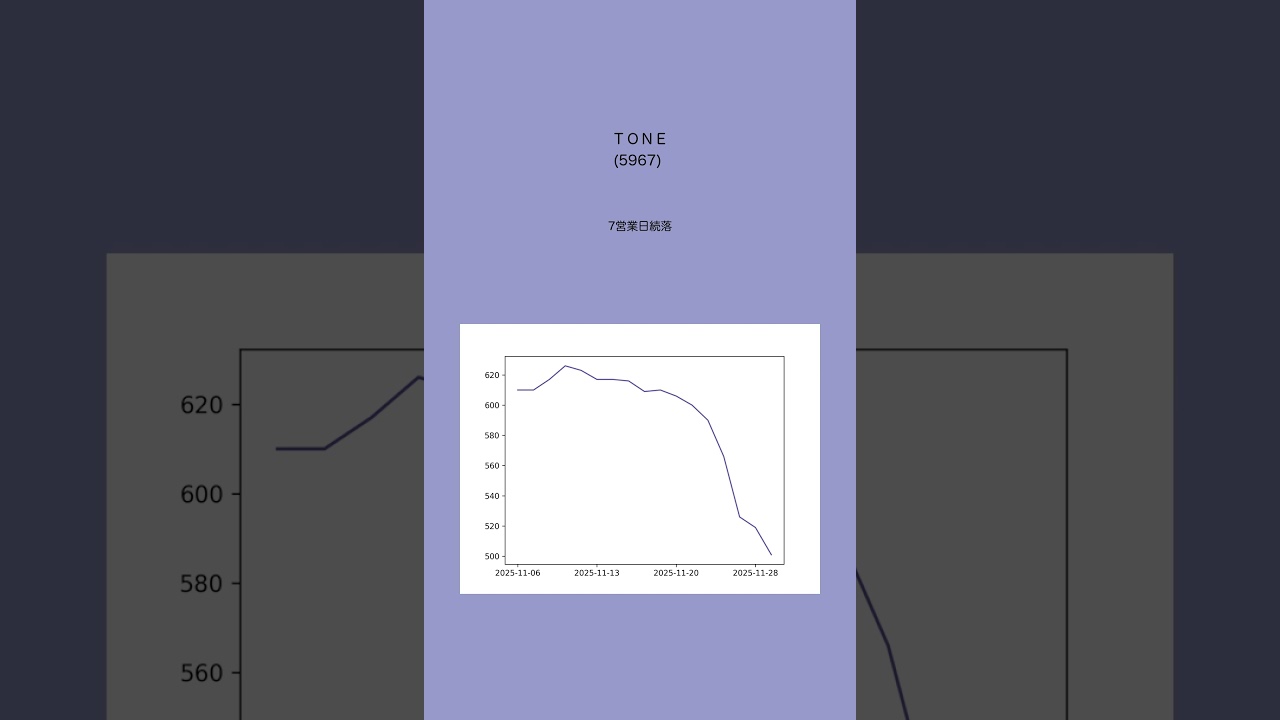 続落中の注目銘柄(12月1日編) 注目銘柄 X 2025.12.02 十分な調査を行っておりますが複数人での確認等は行っておらず誤りが含まれる可能性がございます。 気になる点があれば他の株サイト等も確認をお願いします。また、投資は自己責任でお願いします。 VOICEVOX:雨晴はう