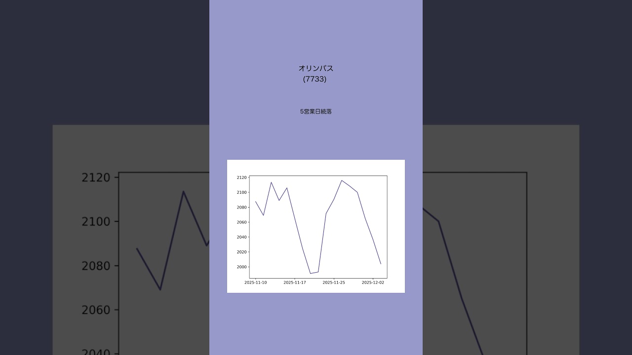 続落中の注目銘柄(12月3日編) 注目銘柄 X 2025.12.04 十分な調査を行っておりますが複数人での確認等は行っておらず誤りが含まれる可能性がございます。 気になる点があれば他の株サイト等も確認をお願いします。また、投資は自己責任でお願いします。 VOICEVOX:雨晴はう