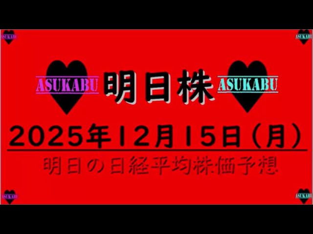 【明日株】明日の日経平均株価予想 2025年12月15日 日経平均、今週は暴落が来るの巻(^_-)-☆