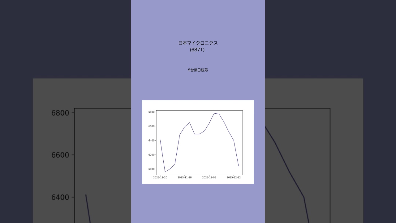 続落中の注目銘柄(12月15日編) 注目銘柄 X 2025.12.16 十分な調査を行っておりますが複数人での確認等は行っておらず誤りが含まれる可能性がございます。 気になる点があれば他の株サイト等も確認をお願いします。また、投資は自己責任でお願いします。 VOICEVOX:雨晴はう