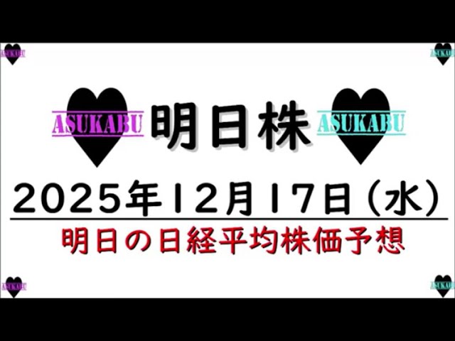 【明日株】明日の日経平均株価予想 2025年12月17日 円安で日経は上昇へ。