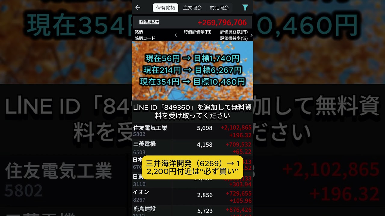 #株式投資家 #長期投資#株価予測 #投資信託 #証券会社 株価予測 X 2025.12.202025.12.21 LINE「849360」で検索してください。 動画でご紹介した急騰中の銘柄について、 無料レポートを配布しています。
