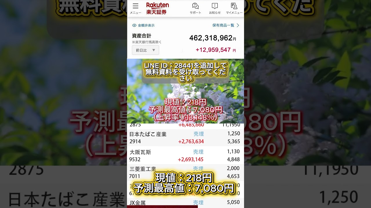 動画で紹介した急騰中の優良銘柄に興味がある方には、無料でレポートをお渡しします!検索して追加してください!!「いいね」してくださった方は、プロフィールのリンクから入っていただければ、銘柄コードを受け取れます。