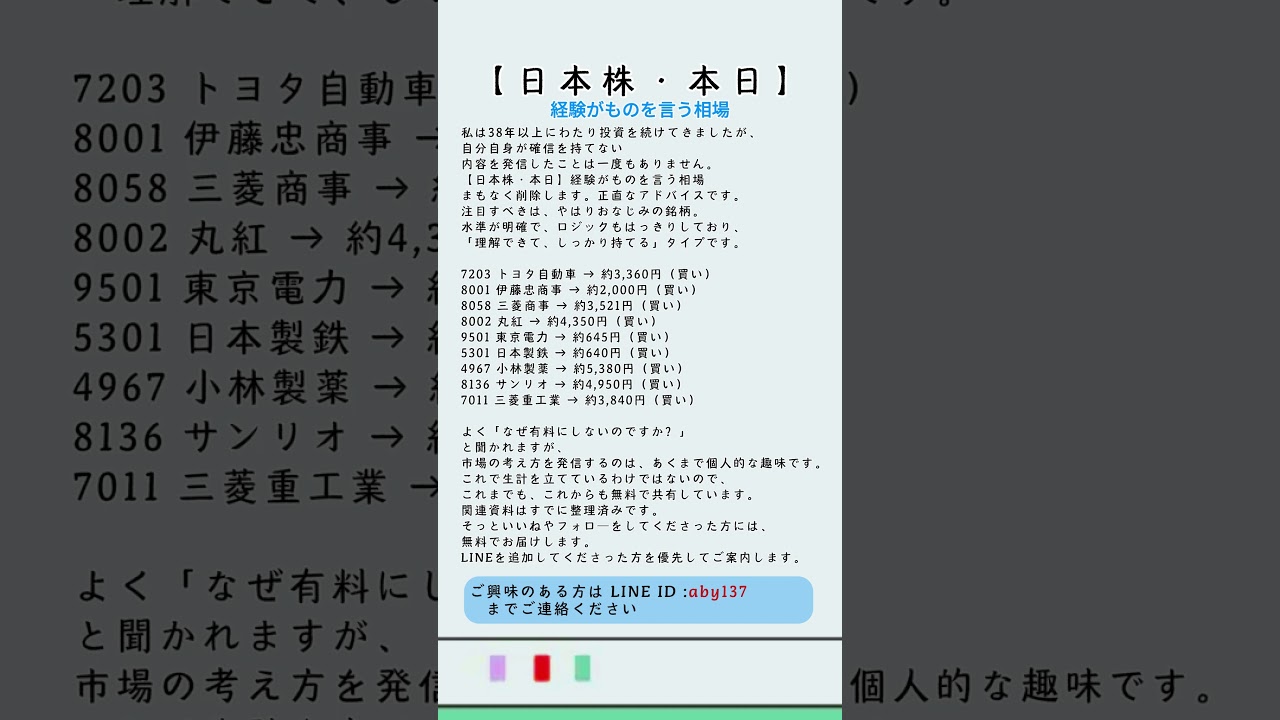 【日本株・本日】経験がものを言う相場まもなく削除します。正直なアドバイスです。 #注目銘柄