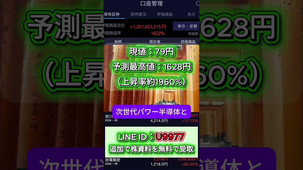 株投資LINE【U9977】動画で紹介した急騰中の優良銘柄に興味がある方は、無料でレポートを差し 上げます!検索して追加してください!!