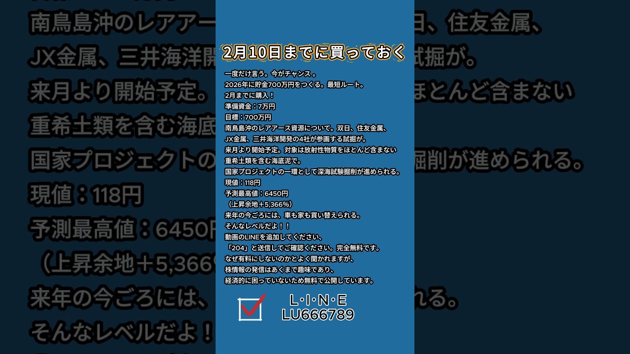 もっと知りたい方は、以下のLINE(ID:LU666789)を追加してください。