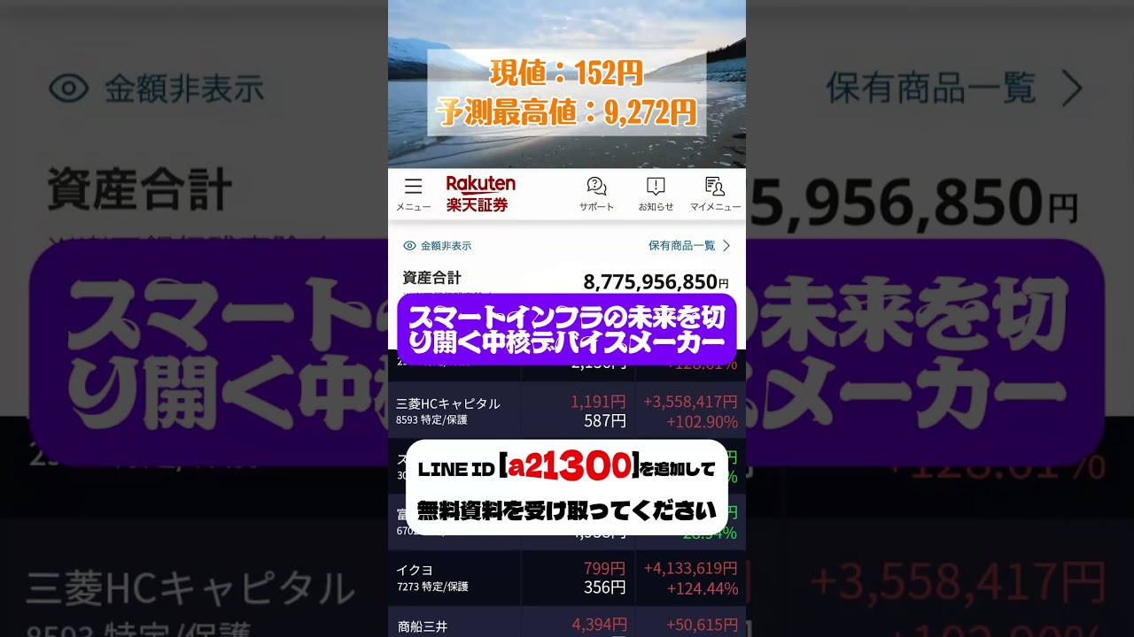 株投資LINE🆔【a21300】動画で紹介した急騰中の優良銘柄に興味がある方は、無料でレポートを差し 上げます!検索して追加してください!!