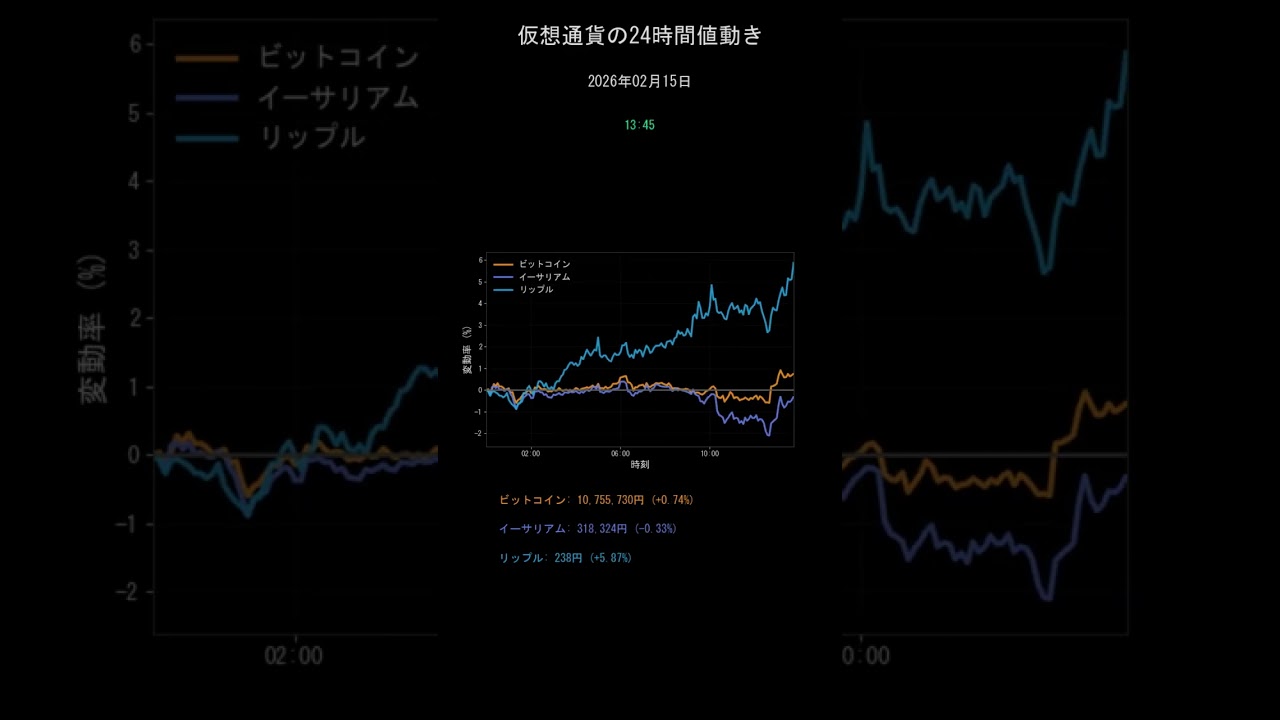 ビットコイン今日の価格【2026年2月15日(日)最新】BTC/ETH/XRP 24時間チャート分析 #shorts