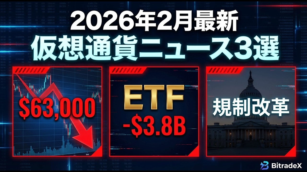 【2026年2月最新】仮想通貨ニュース3選!ビットコイン暴落の真相・ETF流出・規制改革の行方|BitradeX解説